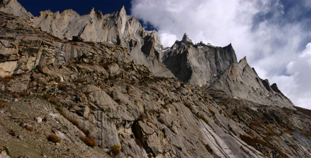 Amin Brakk Nangma valley is one of the most well known and beautiful rock glory Karakorum Region, The mount Amin Peak is situated in inaccessible Northern Area of Karakorum Baltistan, There more attempts during the summer of 1999 and remarkably tow of these were brought to a successful conclusion. West face of Amin Brakk, West face of Amin Brakk (generally quoted as 5850m but thought possibly higher) close to the head of a side branch of a Nangma Valley, Amin Brakk was first attempted in 1996 by the Basque climbers, Jon Lazkano, when he attempted a line on the adjacent North West Face of Nawaz Brakk during possibly the first serious climbing expedition to this hidden peak, it is one of the most complex and extended wall, it is hardest than Trongo Tower, The face formed the target for a group of a British climbers first saw the wall during a visit previous year. Great Tower First Ascent was by American.Changi Tower also is part of Amin massif. First ascent by Paul Weber and Ned Norton climbed a route on the Changi Tower, starting to the left of Excess Baggage up a slanting corner system then cutting through the last named route to finish on the North Summit. A Women’s team of Abby Watkins, Vera Wong and Nicola Woodford from Australian and New Zealand team also made first ascents in the Nangma Changi Tower.Most of the rock is both granite, gneiss, or schist, however, the predominant rock type is granite, the couloirs then dog legs left parallel to the face and the routes follow this to a small saddle. There also many anthers unclimbed peaks the Peak in the Nangma Valley to make new routes. Climbing of below 6500 meter peaks without any bonding royalty fee. Travel with your guide and have a life time Experience on Amin Barkk Nangma valley.No peak permit requires and Travel with your guide and have a life Experience