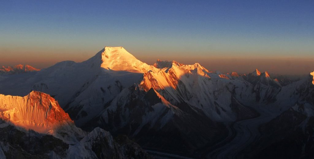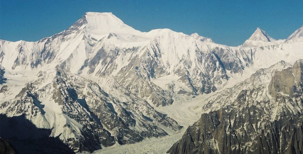 Chogolisa(or Bride Peak)Chogolisa has several peaks; the highest on the SW face (Chogolisa I) rises to 7,665 metres. The second highest at 7,654 meters on the NE side (Chogolisa II) is the one named Bride Peak by Martin Conway in 1892. in1909, a party led by Duke of the Abruzzi reached 7,498m from a base camp located on the northern side and a high camp on the Chogolisa saddle at 6,335m. Bad weather stopped the party from ascending further. During their trips in 1911 and 1912, Mr. And Mrs. Fannie Bullock Workman of USA visited the junction of Chogolisa glacier with Gondagoro glacier. They also looked into the Chogolisa glacier but did not go farther to its main head. They are also stated to have surveyed the visited areas quite accurately.Herman Buhl and Kurt Diemberger attempted this peak first time in 1957 just two weeks after the successful climb of Broad Peak. They called off their attempt at 7100 meters due to bad weather and on way back the conqueror of Killer Mountain (Nanga Parbat) lost his life.Chogolisa was climbed by a 13 man Japanese party led by Hiroaki Akiyama on its NW ridge from the glacier west of the peak. They went from Khaplu up the Hushey Valley to set up Base Camp on June 14th at 4240 M on the east bank of the Chogolisa Glacier. Camp 1 was established on June 21 and Camp II at 5220 M on the snow plateau above the ice falls on the 29th. Camp III was set up near the NW Col at 5820 M on July 5th. Camp IV was made on the NW ridge on July 10th. On July 14th Misuo Yajima, Sanji Kabayashi, Testsuo Nakamura and Shoichi Yasuji climbed to the top in eight hours. On the 22nd Hiroshi Narita, Minoru Osama and Akio Kida set out from CIII at one A.M. However, Japan made the first successful North East summit on August 4, 1958.