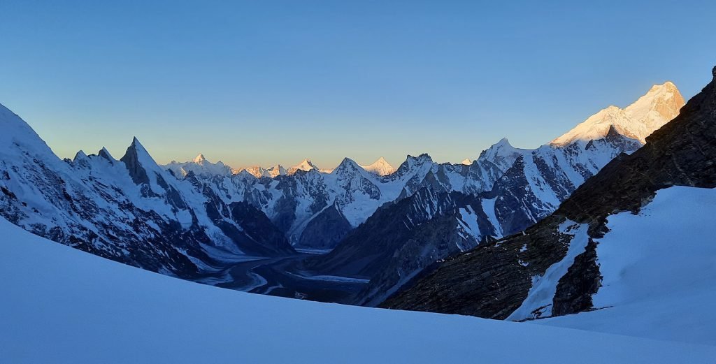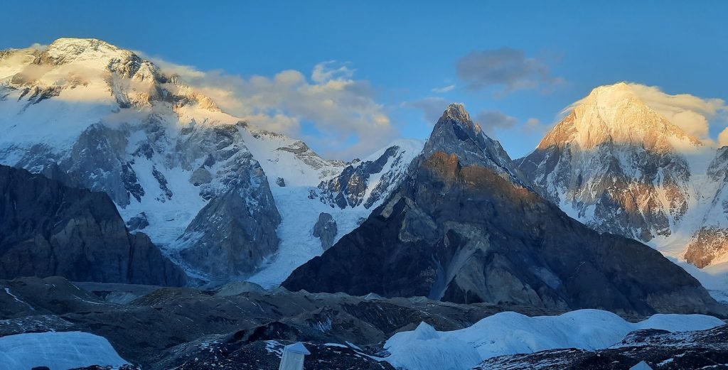 K2 Expedition is considered to be one of the top mountaineering adventures in the world, it combines the thrill of climbing and trekking in the glacial surroundings around Baltoro Glacier with the pleasure of touring in the colourful Himalayan and Karakorum valleys of Skardu, Shigar and Askoli. During the K2 expedition you will have spectacular view of other world famous peaks, Including Broad Peak (8,044 m), Gasherbrum Group, Chogolisa (7,686 m), Golden Throne (7,365m), Trango Tower and The first ascent route is known as the standard route or Abruzzi Ridge. The route is used for more than any other route, via the Abruzzi Spur (Southeast Ridge). It was first attempted by Luigi Amedeo, Duke of the Abruzzi in 1909 but was first climbed by an Italian expedition on July 31, 1954. This Expedition was led by Ardito Desio and the two climbers who actually reached the top were Lino Lacedelli and Achille Compagnoni. Also on this expedition was the famous Italian climber Walter Bonatti and Pakistani Hunza porter Mehdi, who proved vital to the expedition’s success in that they carried oxygen to 26,600 feet (8,100 m) for Lacedelli and Compagnoni. Their dramatic bivouac in the open at that altitude wrote another chapter in the saga of Himalayan climbing. This spur begins at an altitude of 5,400 m/17,700 ft, where Advanced Base Camp is usually placed. The route follows an alternating series of rock ribs, snow slopes, ice fields, and some technical rock climbing on two famous features, “House’s Chimney” and the “Black Pyramid”. Above the Black Pyramid, dangerously exposed and difficult to navigate slopes lead to the easily visible “Shoulder”. The last major obstacle is a narrow couloir known as the “Bottleneck”, which places climbers dangerously close to hanging seracs. It was partly due to the collapse of one of these seracs around 2001 that no climber’s summitted the peak in 2002 and 2003 and most of the eleven people lost their lives due to the breaking of huge ice blocks from this cliff and often on their way do